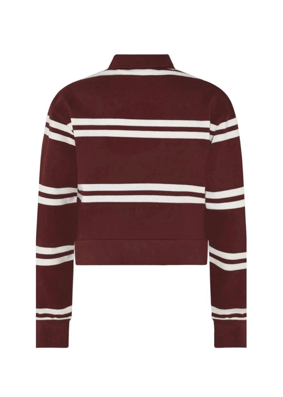 Fineste polo fra Minimum. Poloen har hvide diagonale striber, en krave og lukkes med knapper.