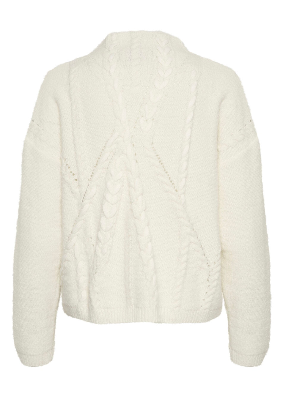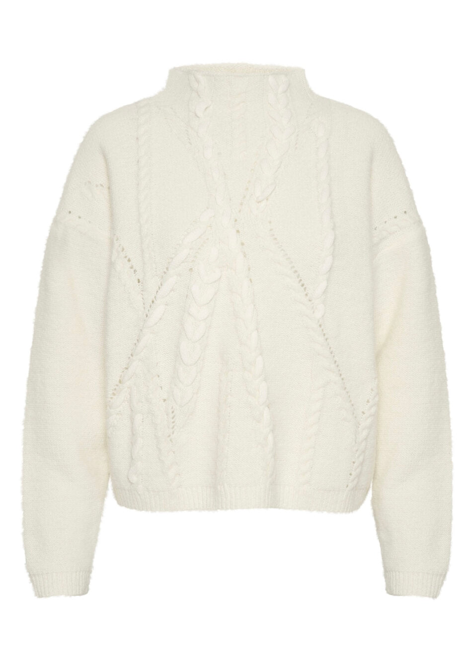 Flot hvid strik fra My Essential Wardrobe. Strikken har en løs pasform, høj hals og lange ærmer.