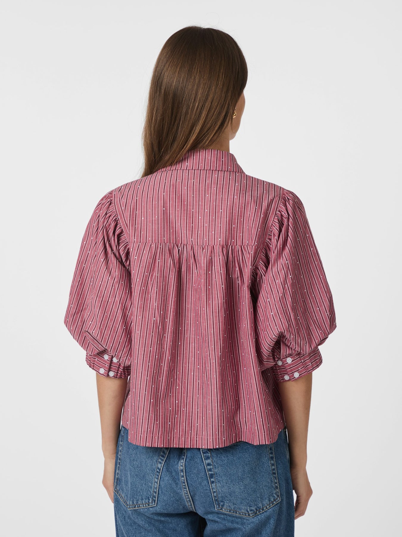 Neo Noir Etta Soft Stripe Stone Shirt Dark Rose