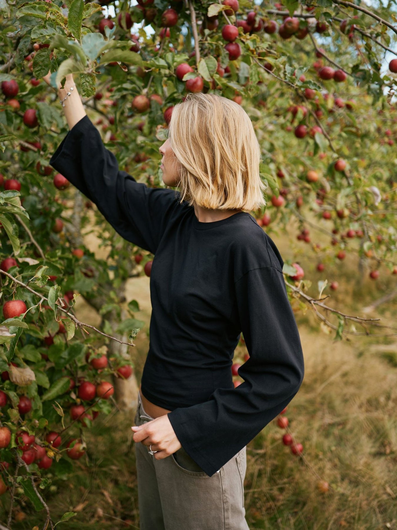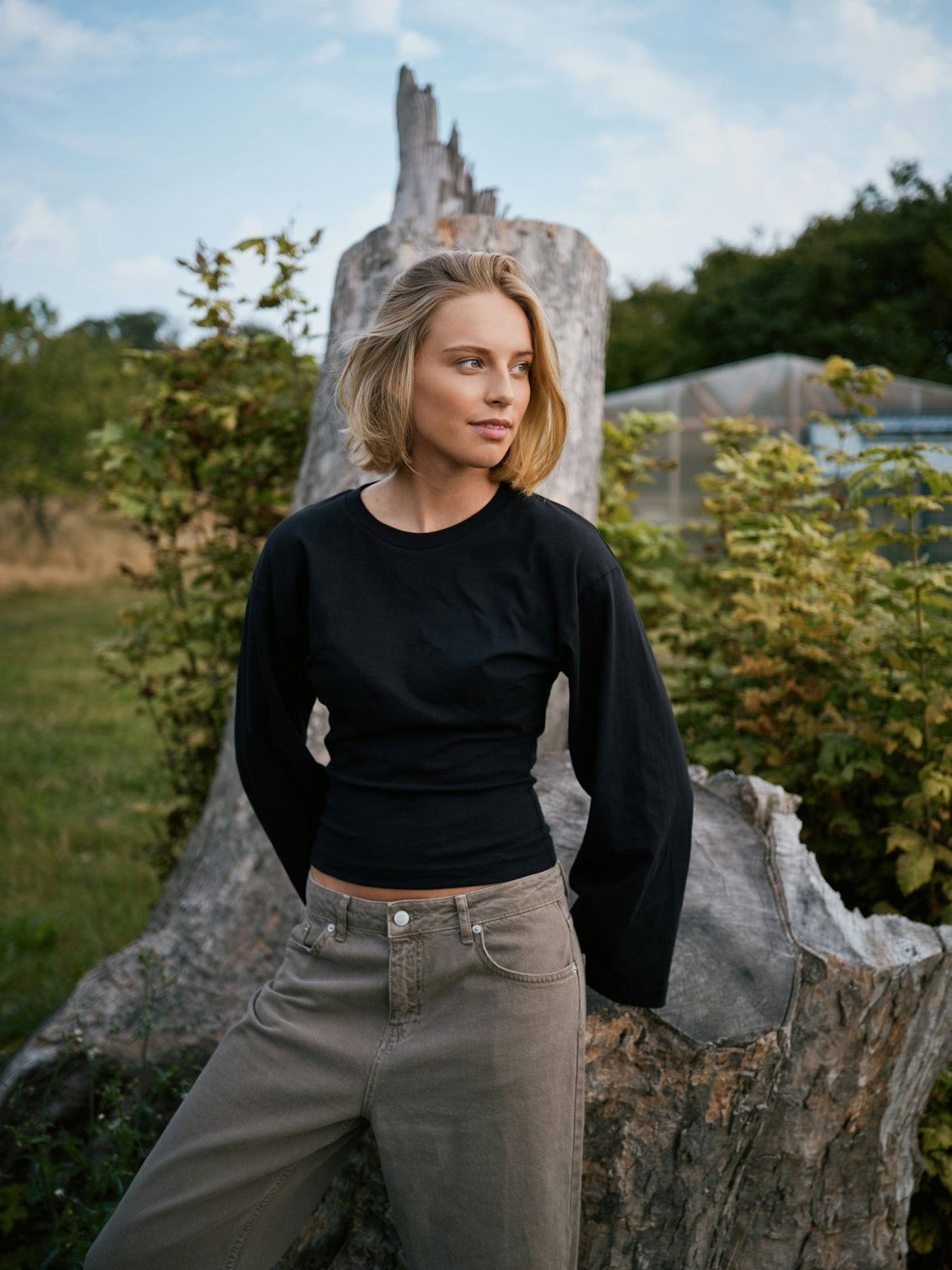 Sort langærmet T-shirt fra Neo Noir i lækker blød bomuldskvalitet. T-shirten har brede ærmer og en smal pasform omkring livet.