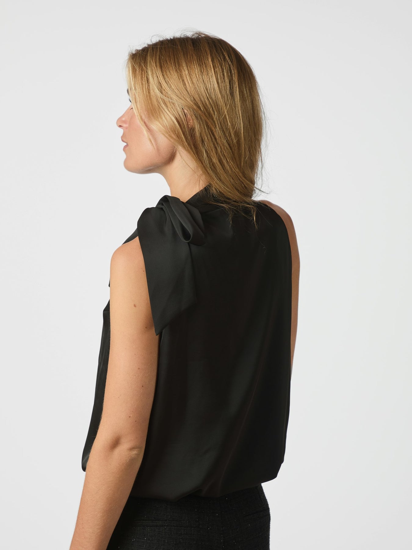 Elegant sort satin top fra Neo Noir i en blød og behagelig kvalitet. Toppen har en draperet pasform, der giver et feminint og sofistikeret udtryk.