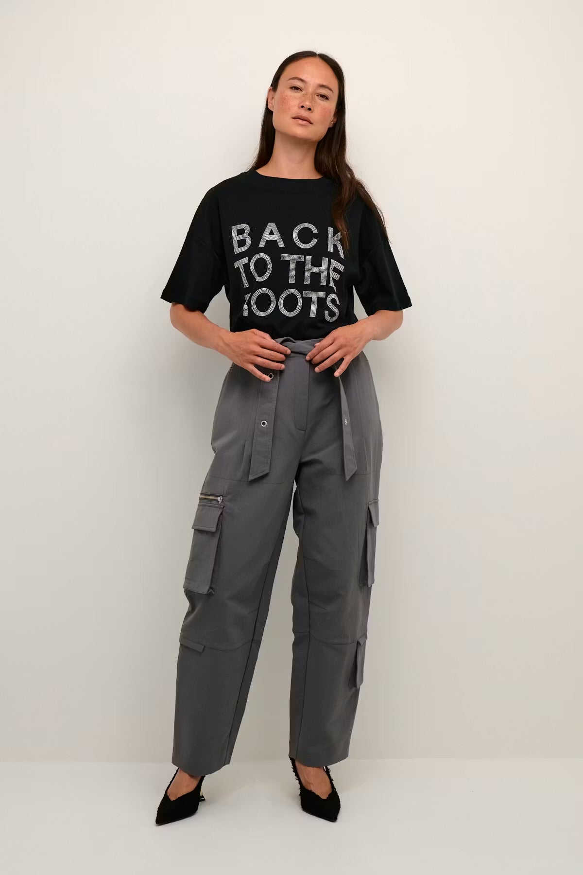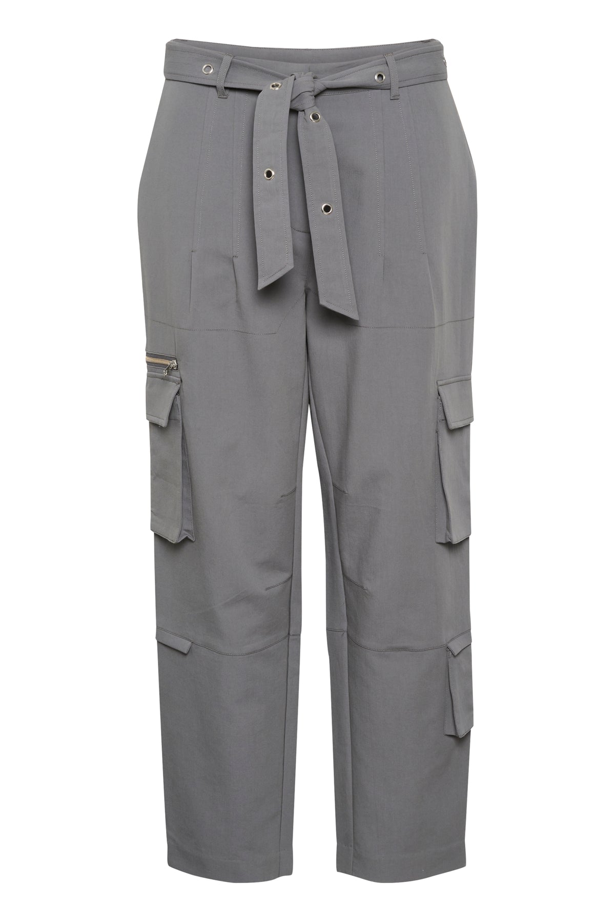 Cool grå bukser fra Karen by Simonsen i cargo style. Bukserne har en løs pasform, bælte detalje, lommer på siden og lynlås for neden.