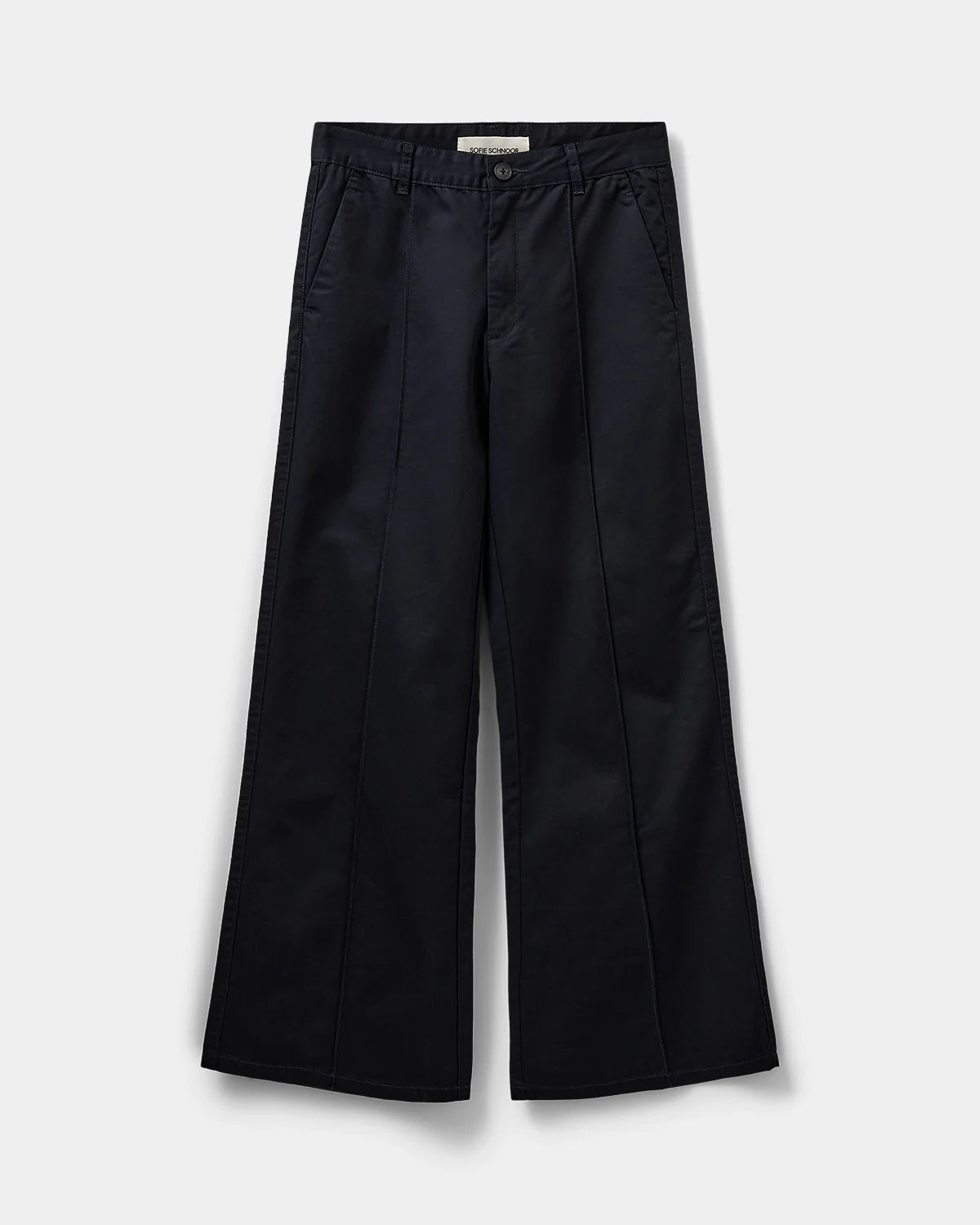 Cool brede navy bukser fra Sofie Schnoor. Bukserne er mid-waist, har læg foran, sidelommer og baglommer.