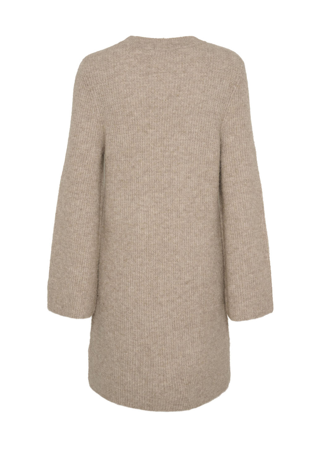 Skøn og blød strikkjole fra Gestuz i sand. Kjolen er ribstrikket og har løse ærmer. Den går til midten af låret.