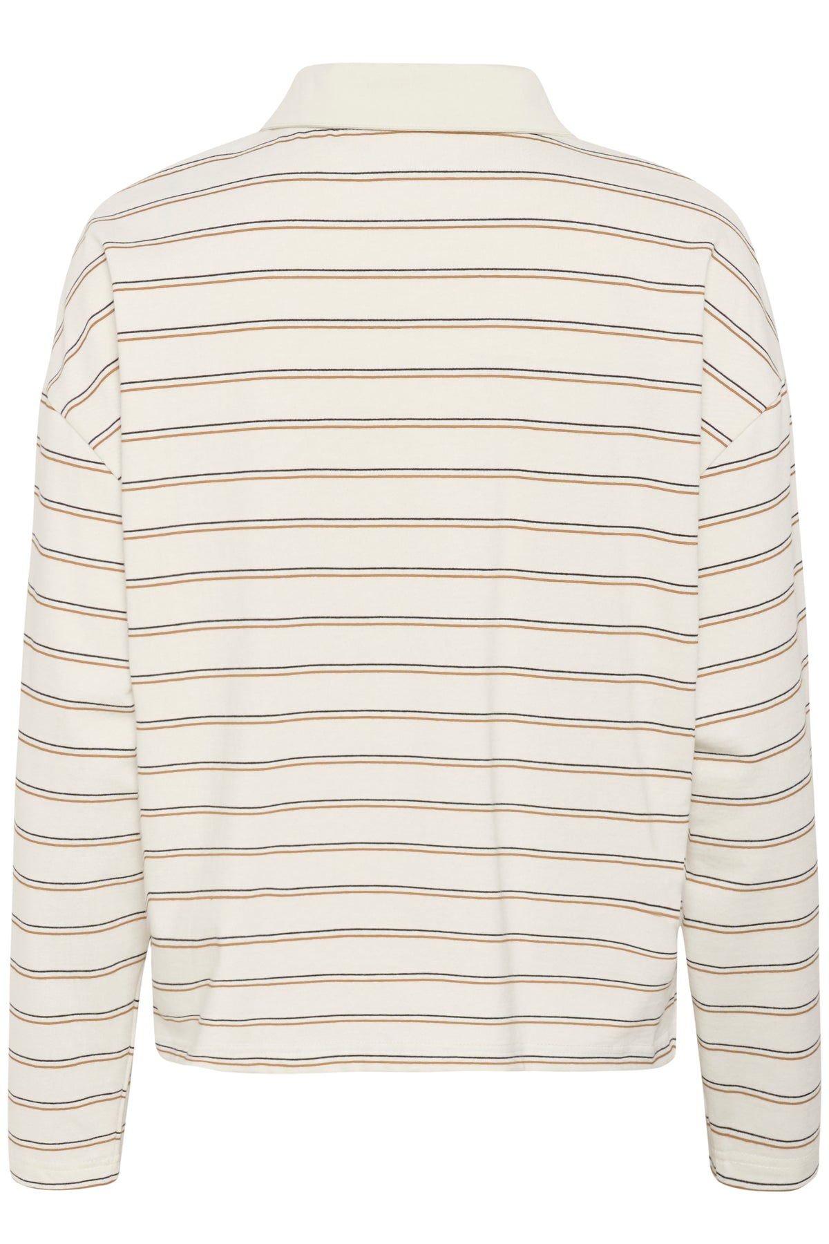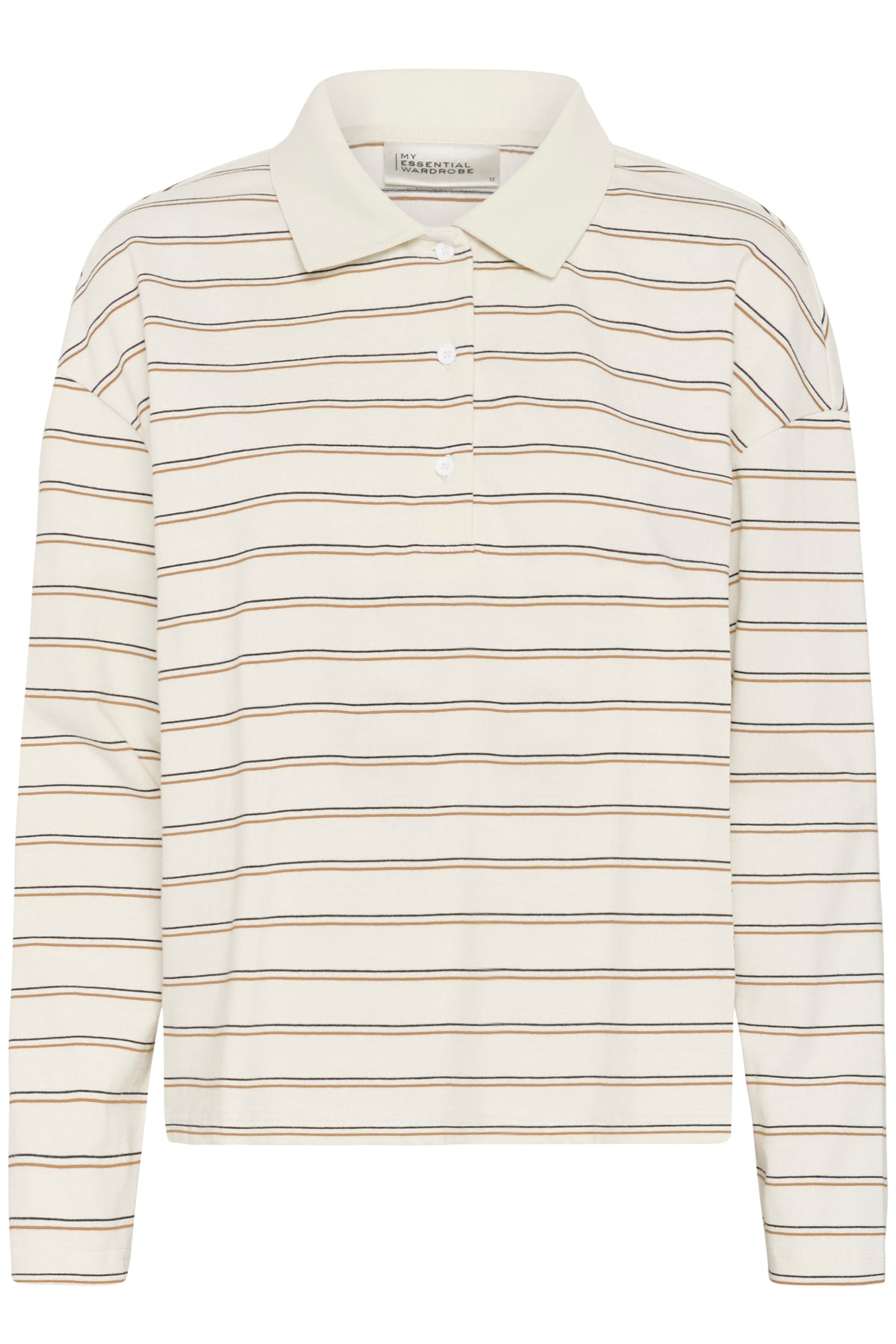 My Essential Wardrobe AnnaMW LS Polo Blouse Snow White Striped