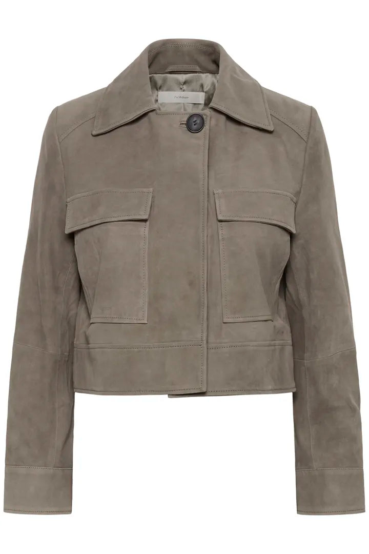 Smart ruskindsjakke fra InWear. Jakken lukkes med knapper og har to store lommer foran.