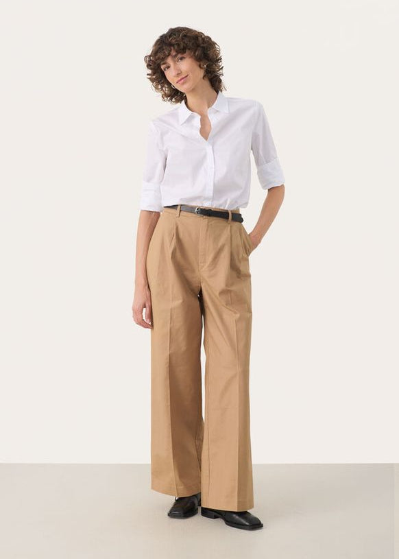 Klassiske elegante beige bukser fra Part Two. Bukserne har en høj talje, læg foran og brede ben.