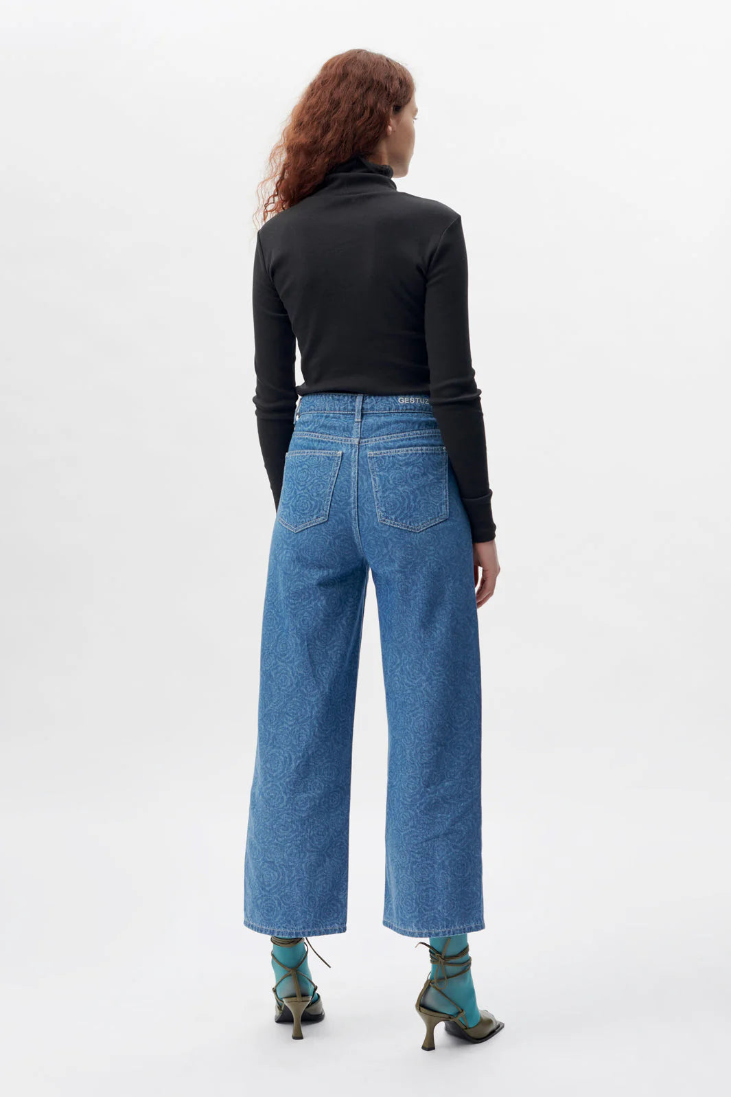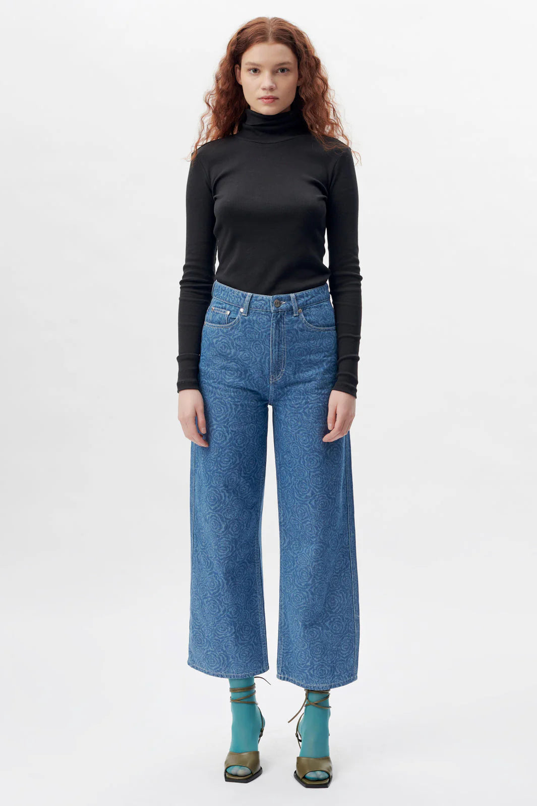 Klassisk sort bluse med rullekrave og ribbet struktur. Blusen har langeærmer og en slank pasform.