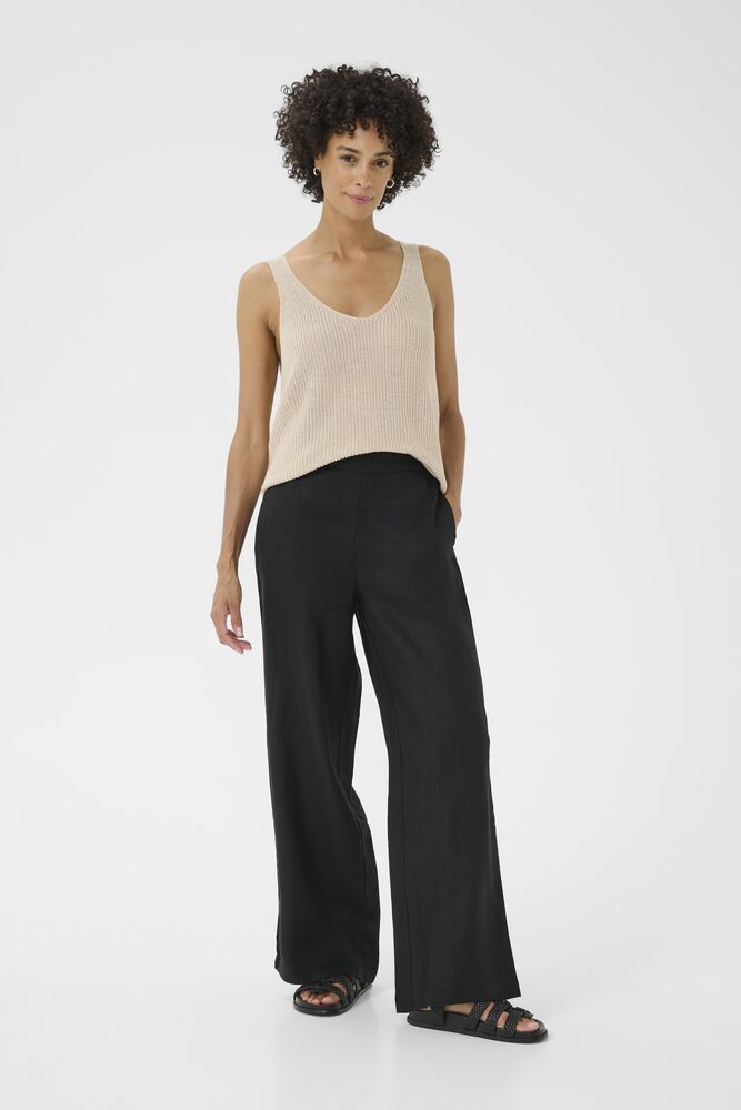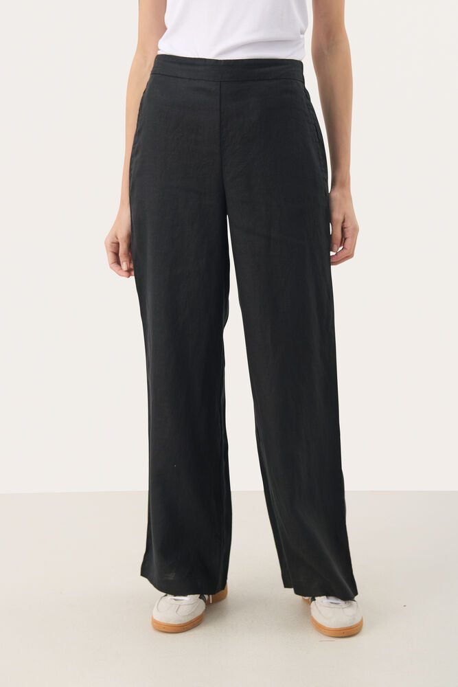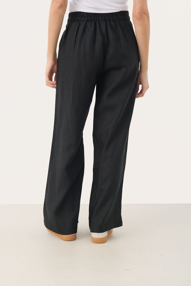 Lækre sorte hørbukser fra Part Two med sidelommer, elastik bagpå og løse ben.