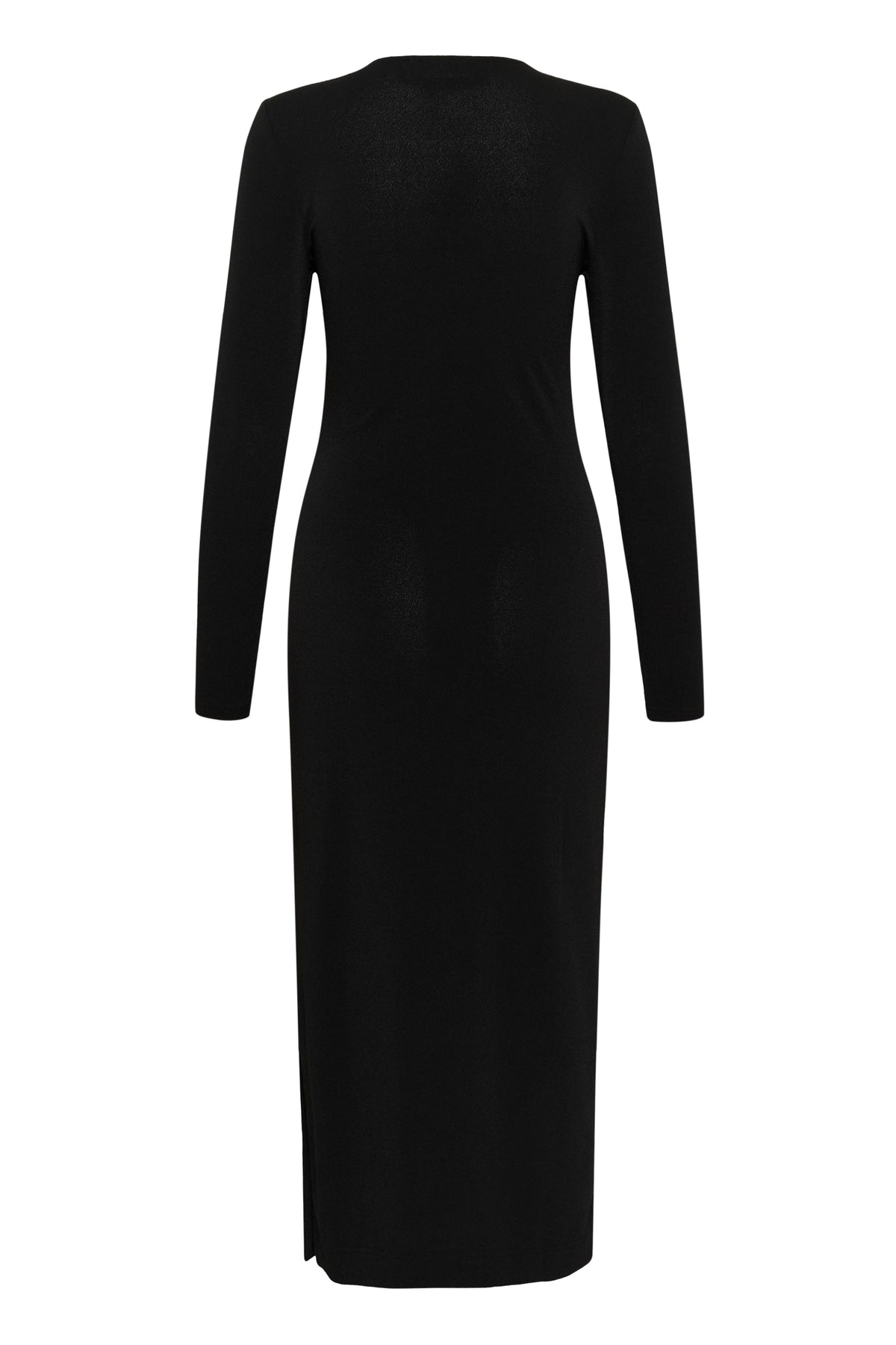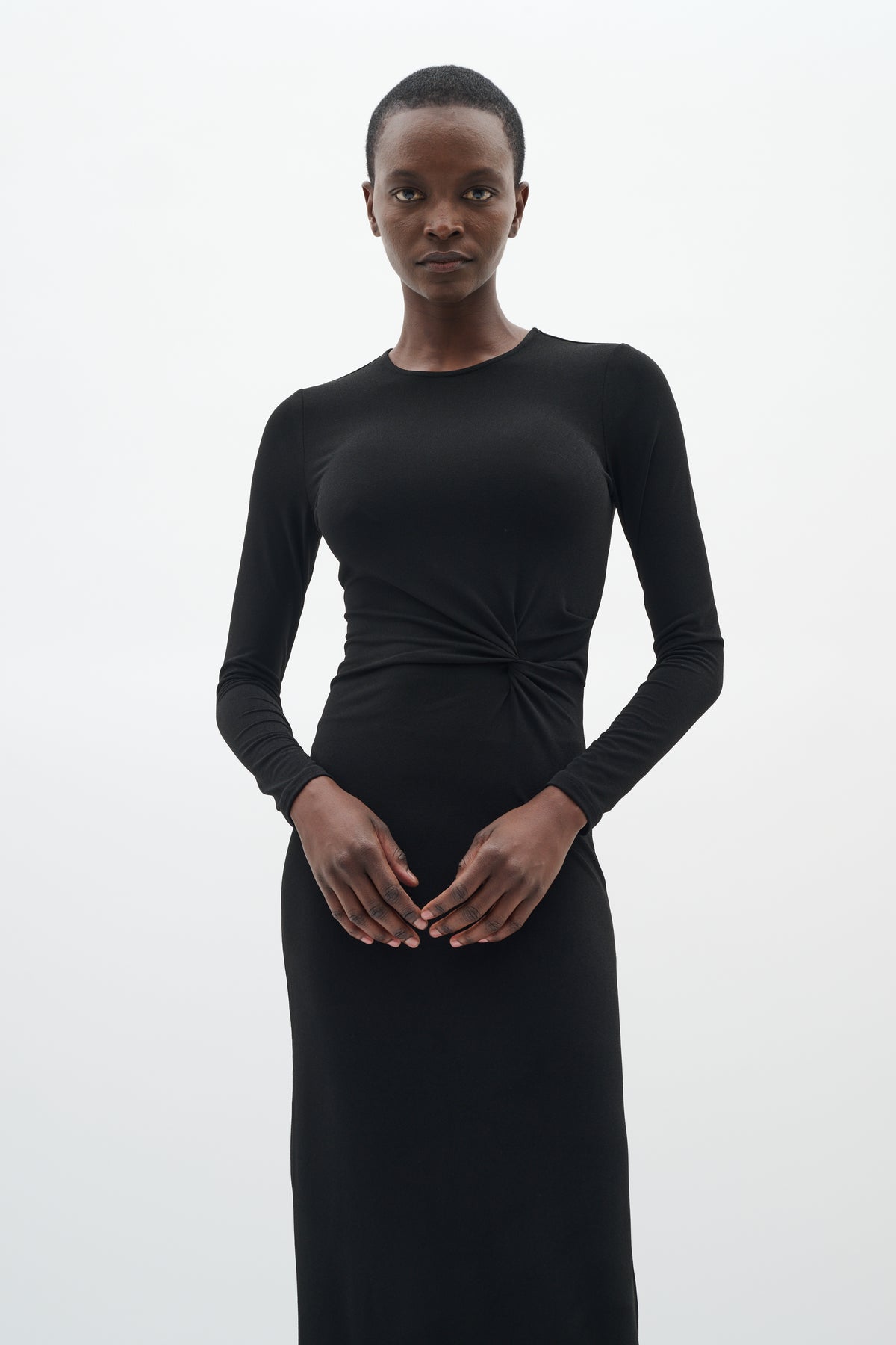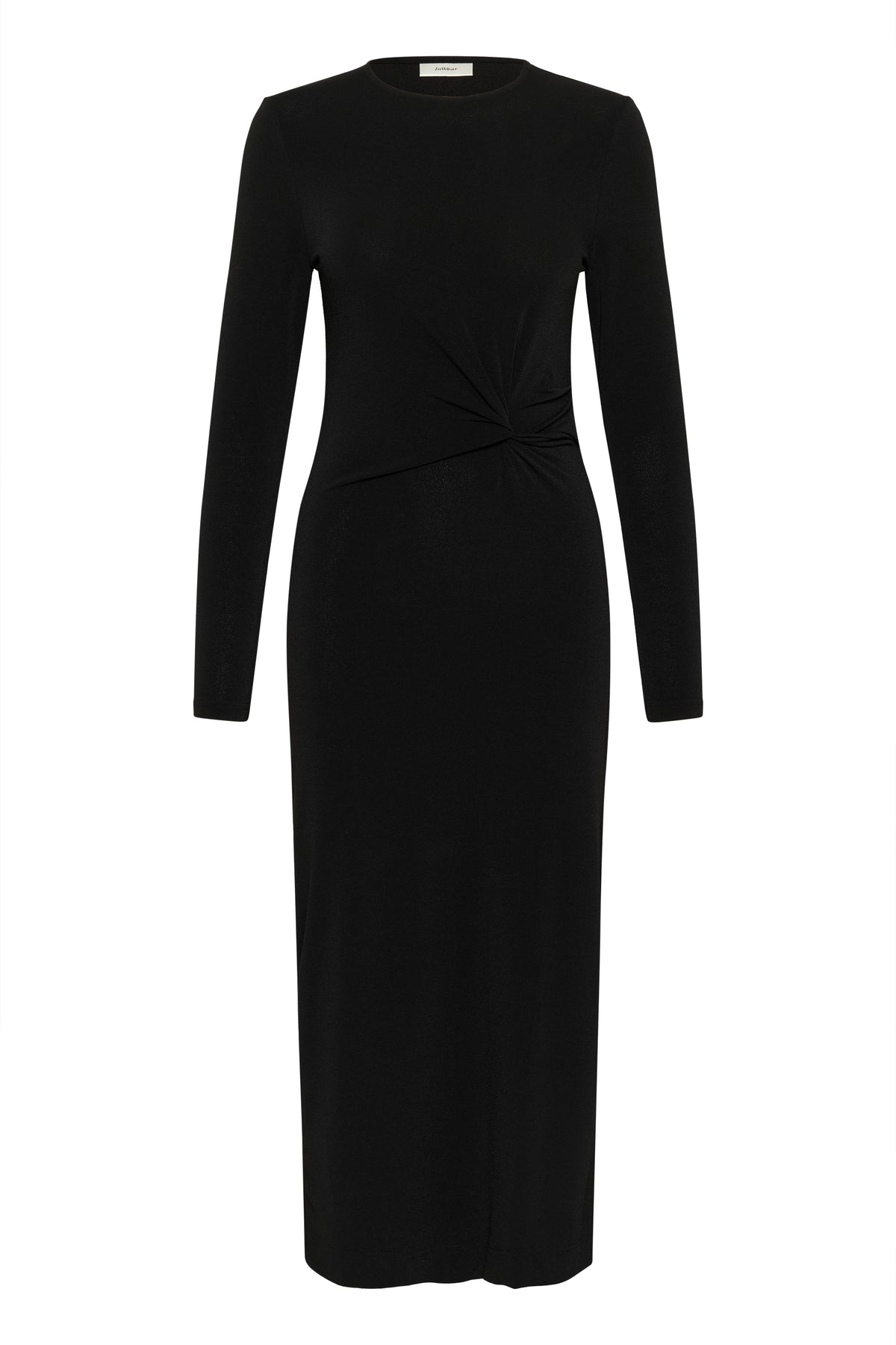 Flot sort kjole fra Inwear med drapering foran, lange ærmer og rund hals.