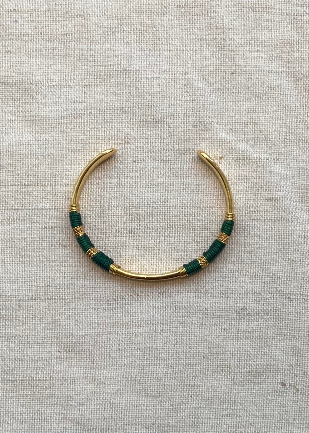 Smukt armbånd fra Plissé Copenhagen grønt bånd omkring.