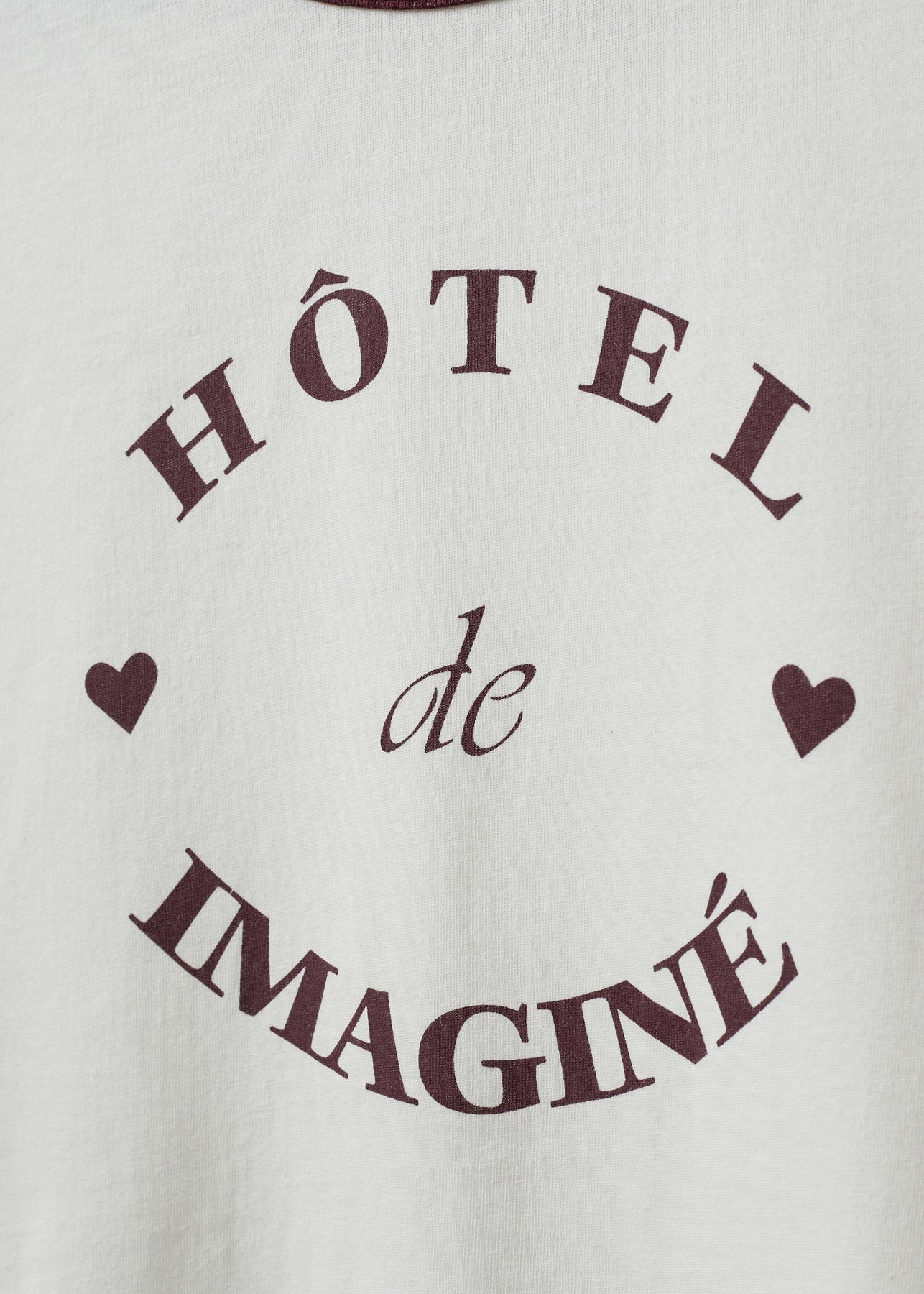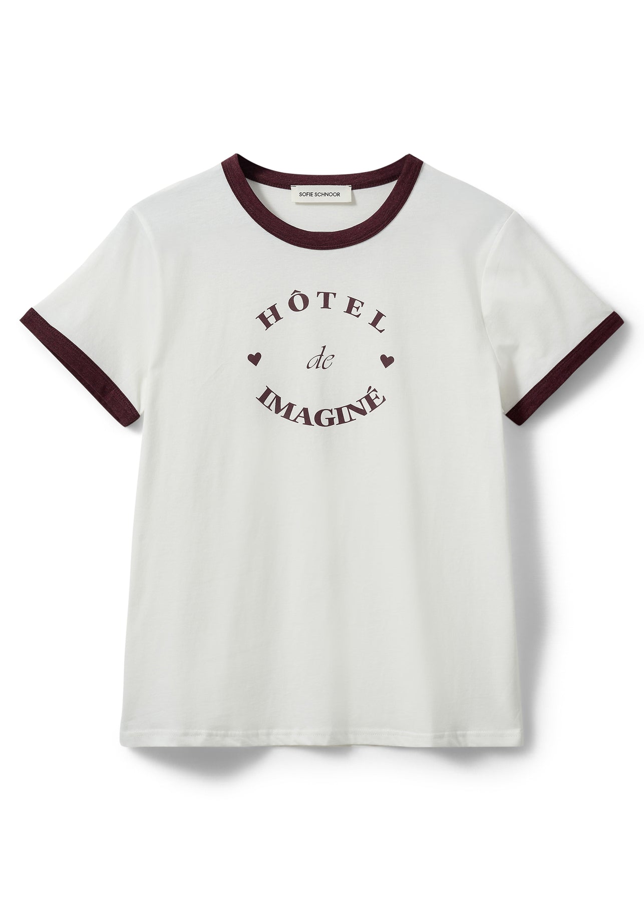 Lækker t-shirt fra Sofie Schnoor i hvid med bordeaux print og kanter.