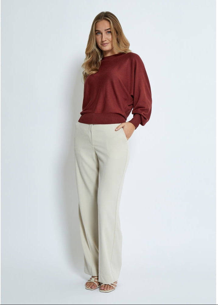 Flotte klassiske lyse bukser fra Minus. Bukserne har brede ben, en mellemhøj talje, sidelommer og bæltestropper.