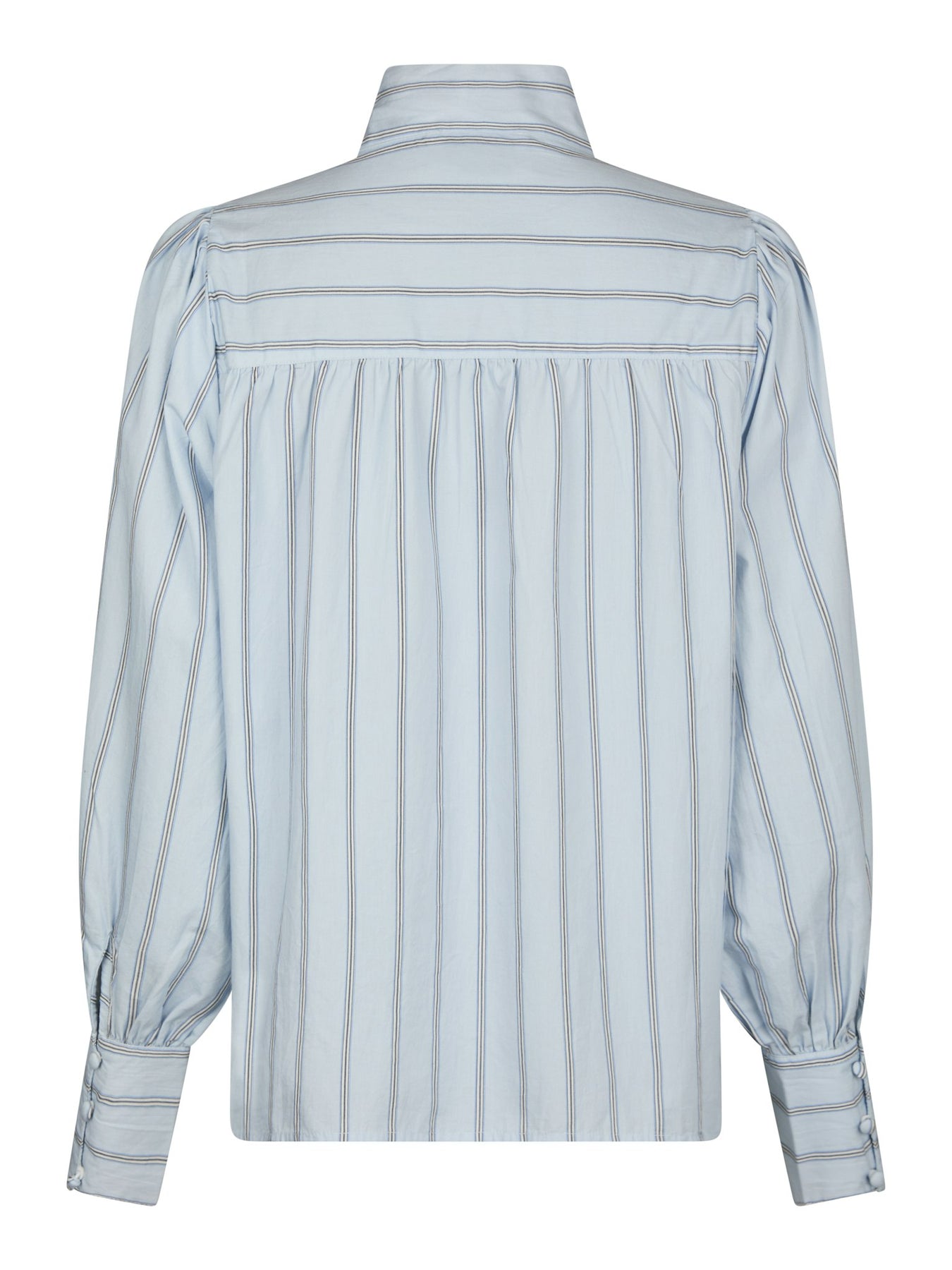 Elegant lyseblå skjorte fra Neo Noir i blød bomuldskvalitet. Skjorten har striber, en behagelig pasform og et feminint design med bindebånd ved halsen.