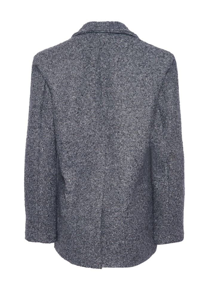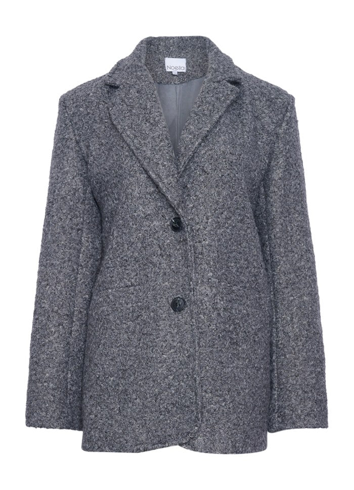 Denne skønne blazer fra Noella har et klassisk, skræddersyet snit i en grå meleret tekstur, der giver et tidløst og elegant udtryk. Den er designet med reverskrave, to knapper foran og en let oversized pasform for et moderne look.