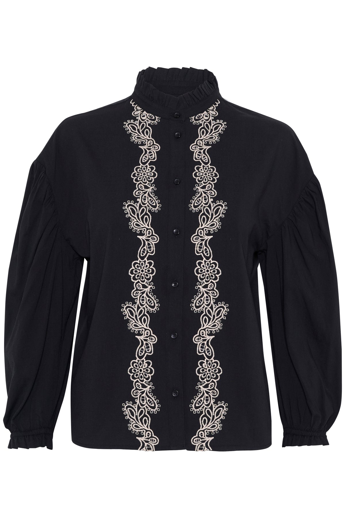 Fin bluse fra Part Two. Blusen har en løftet hals, blonde detaljer foran, samt knapper fra top til bund.