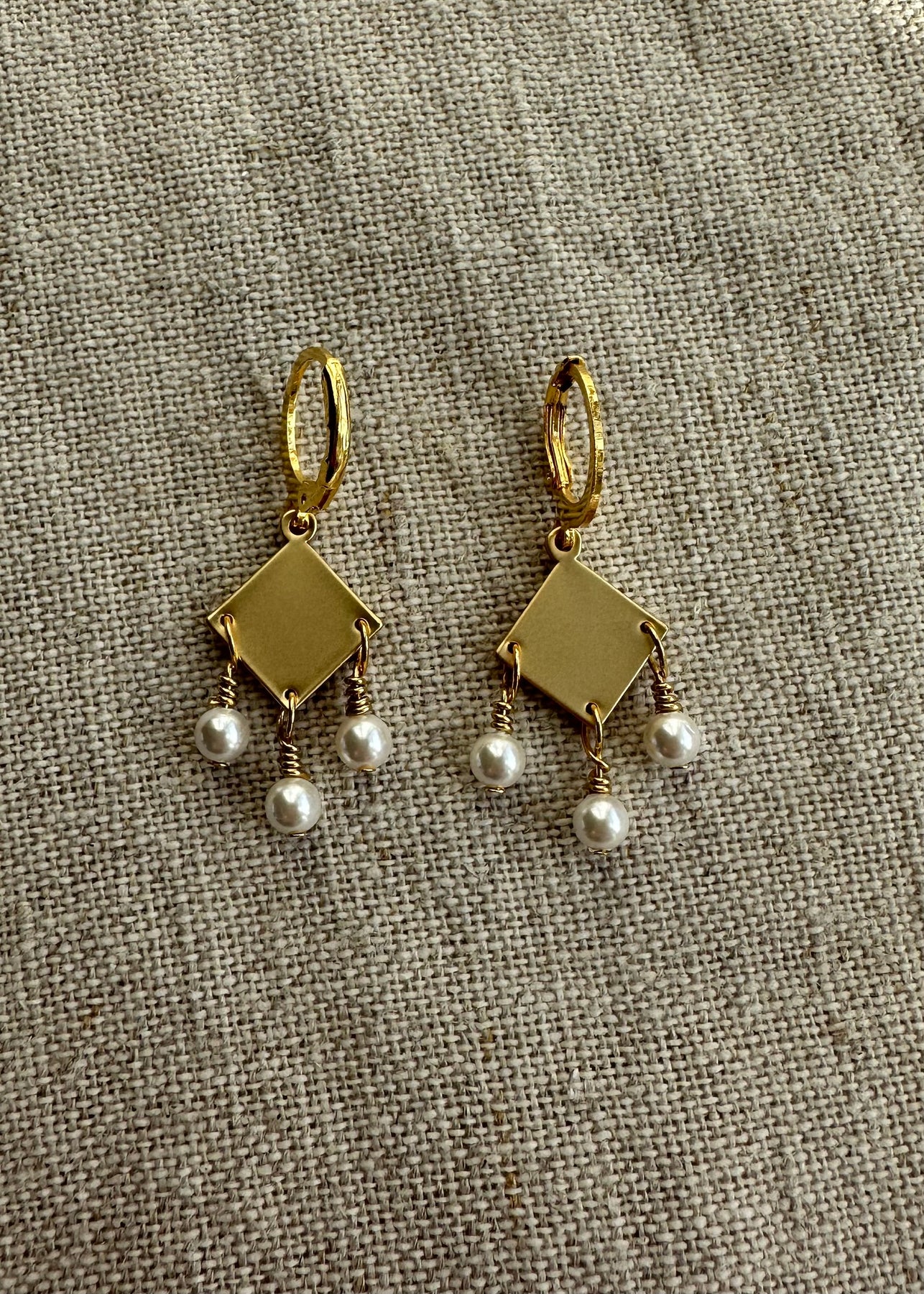 18K messingbelagt guld og hvide perler.