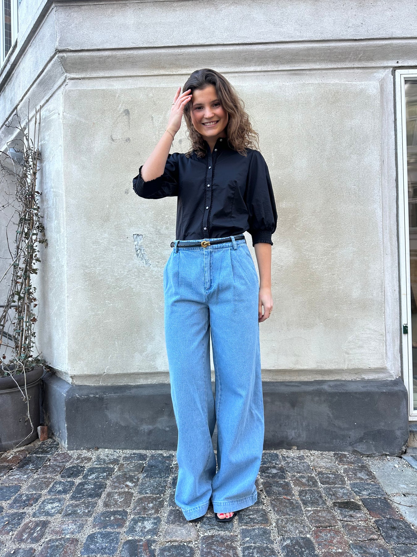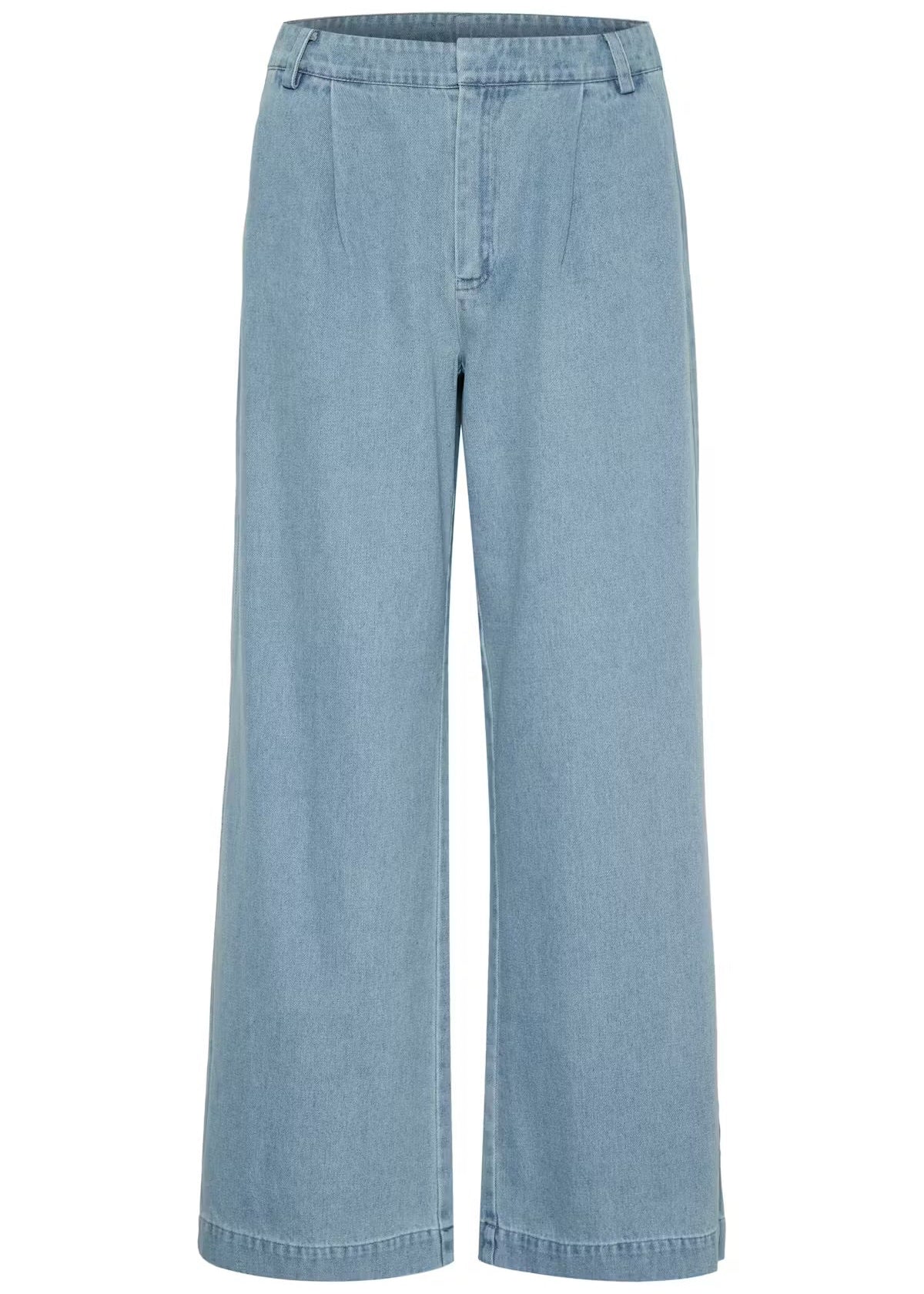 Lækre lyse denimbukser fra Saint Tropez i habitbuks facon med paspolerede baglommer, sidelommer og læg foran.