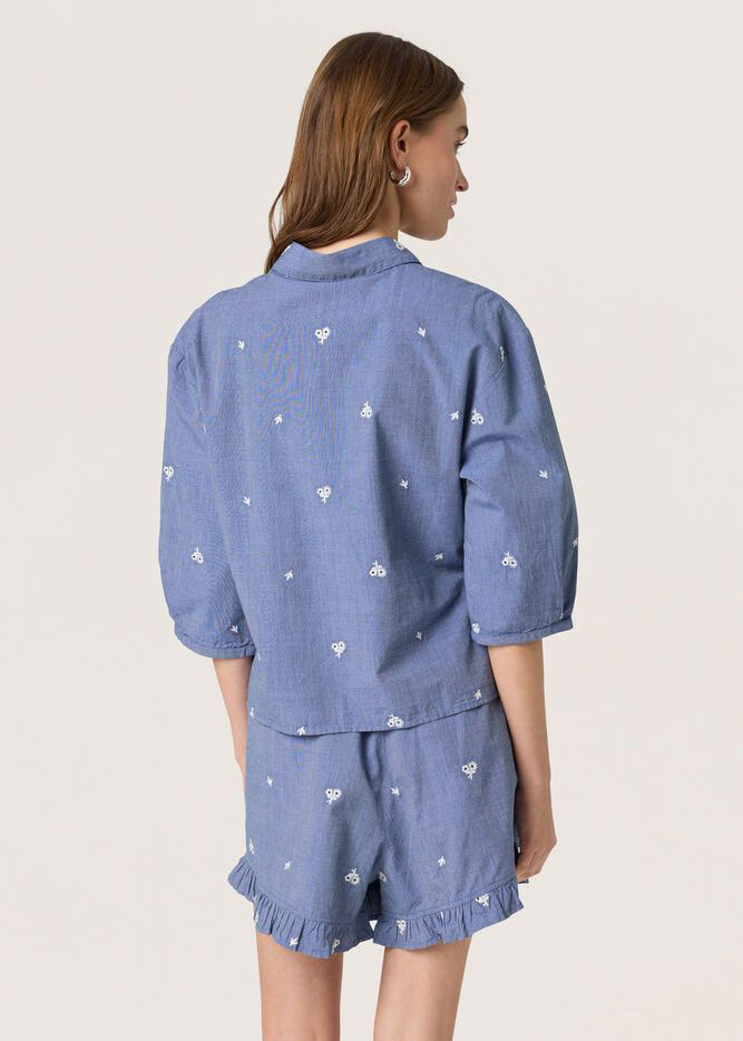 Fin skjorte fra Soaked in Luxury med stumpede ærmer og et fint blomsterbroderi. Skjorten er let taljeret.