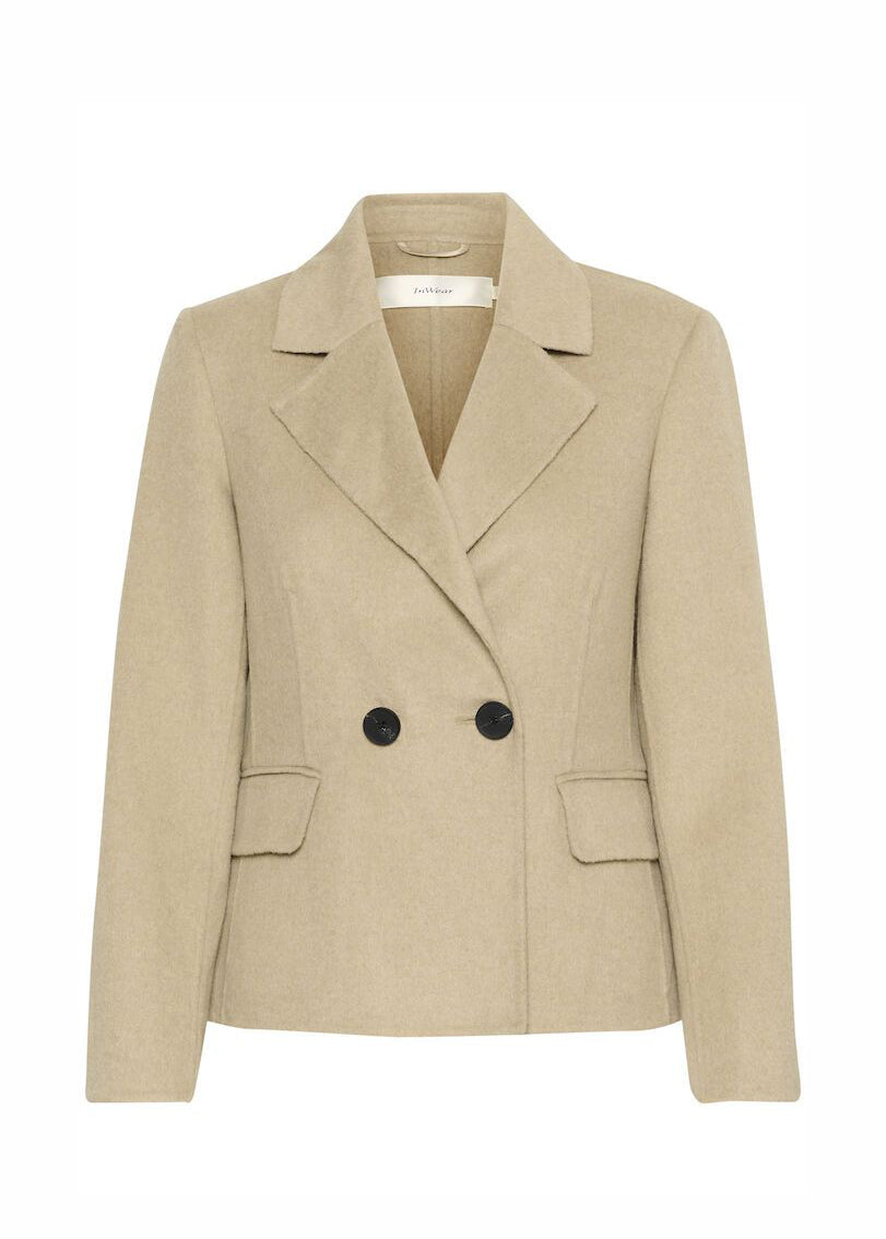 Smuk kort uldjakke fra Inwear. Jakken har klasusk revers, lukkes med to knapper, har lommer og en let taljeret pasform.