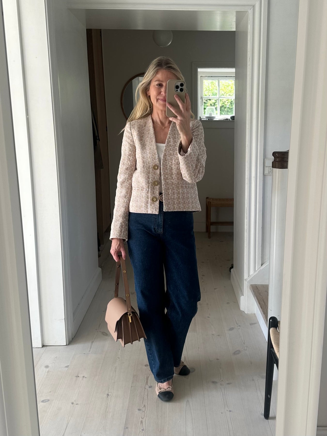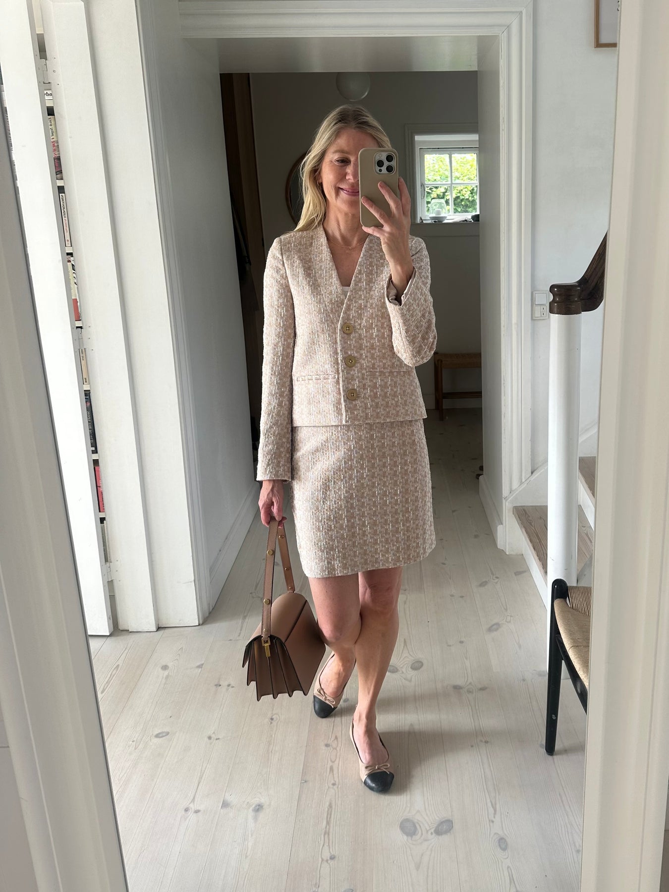Flot bouclejakke fra InWear. Jakken har en afslappet pasform med V-hals og knapper foran.